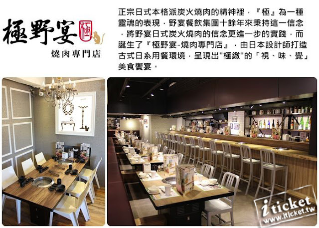 1.本券可4人於極野宴燒肉專門店適用門市享用精緻午餐套餐乙客(已含服務費)。