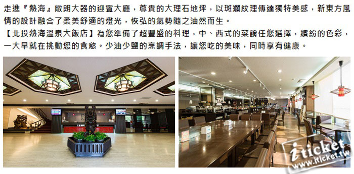 熱海大飯店-為您準備了超豐盛的料理,中、西式的菜餚任您選擇,繽紛的色彩,一大早就在挑動您的食慾。少油少鹽的烹調手法,讓您吃的美味,同時享有健康。