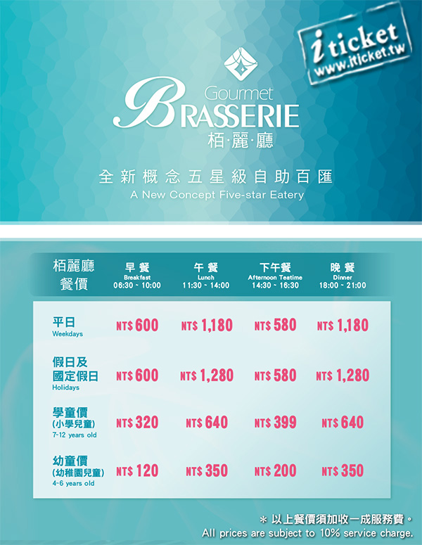 ‧同行兒童可享幼、學童價8折優惠,需另加收原價10%服務費