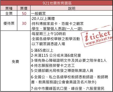 【921地震教育園區 只有台中門市有票,只直接至台中門市購買喔~】