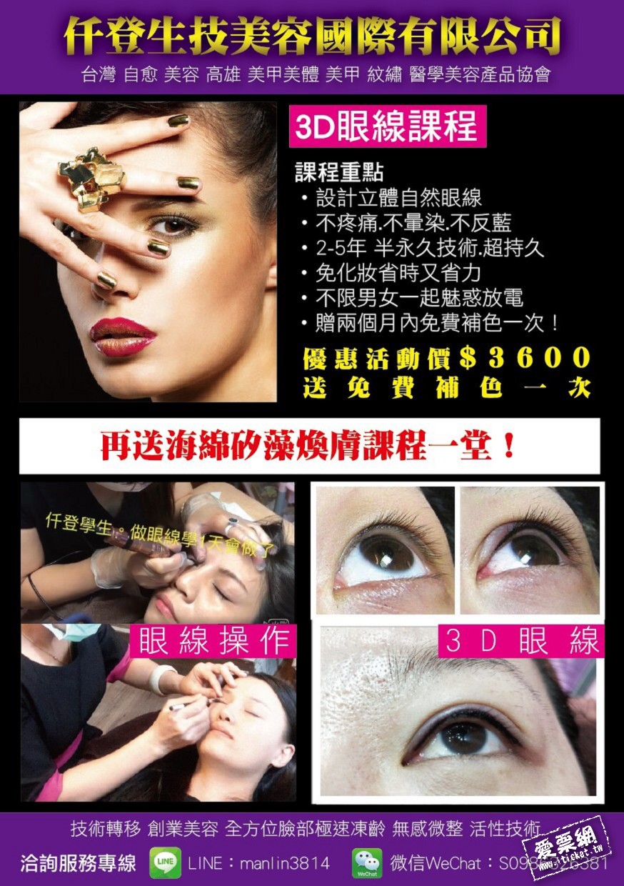 高雄 仟登美學會館 3D童眼線 送臉部矽藻逆齡術課程