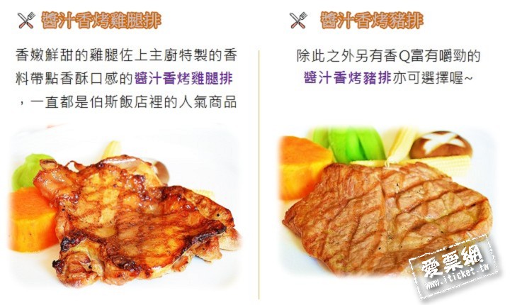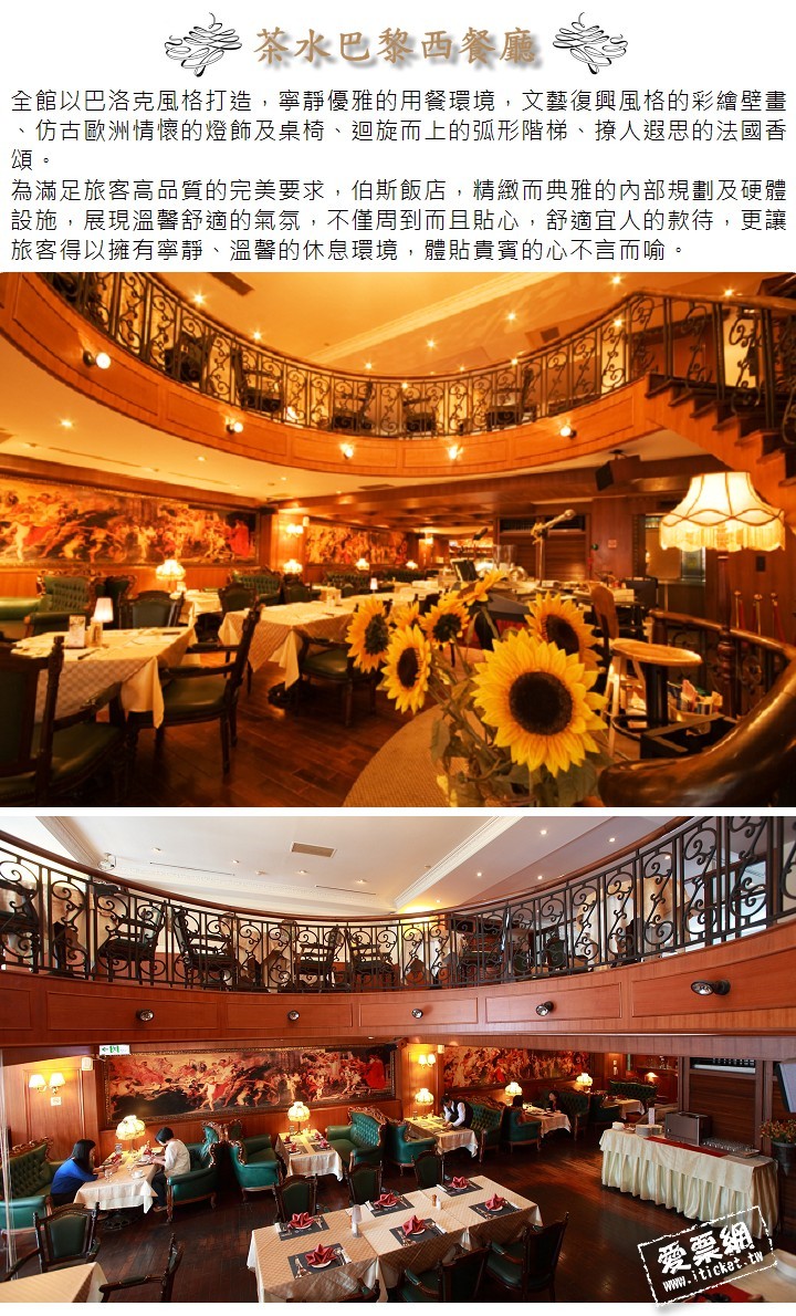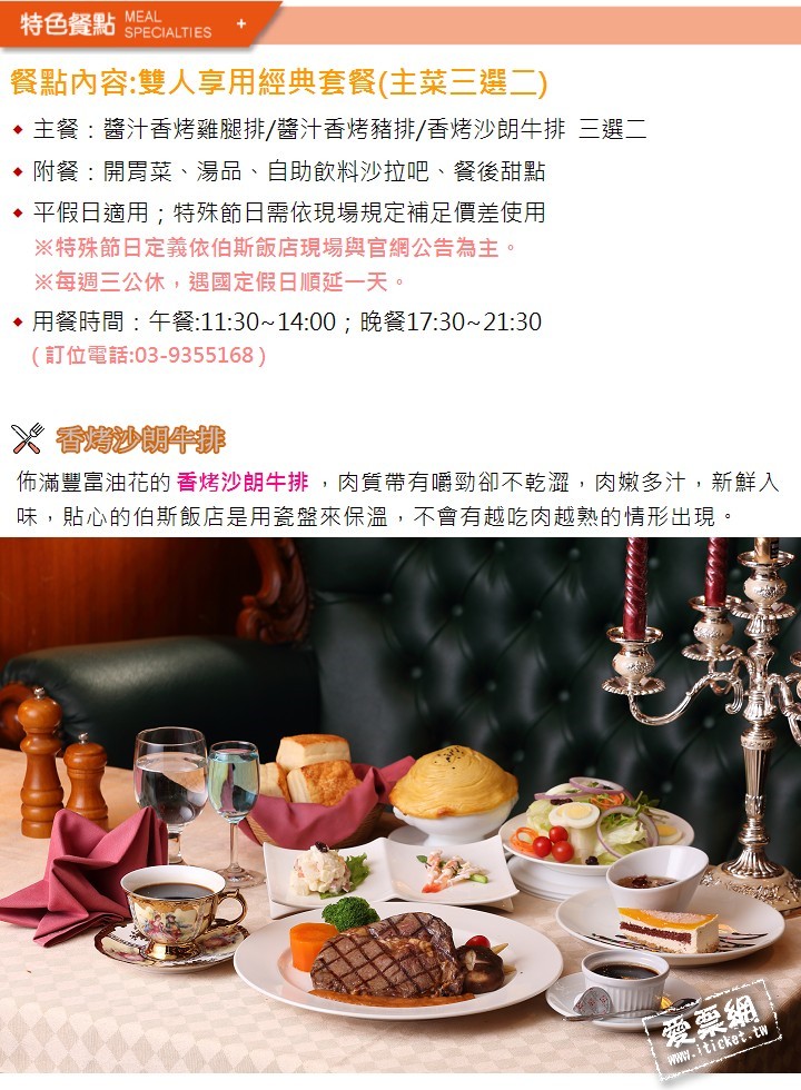 1.本券可享用伯斯飯店茶水西餐廳-經典排餐套餐2客