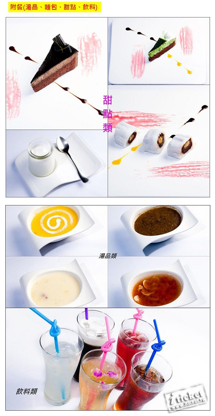 附餐:湯品、麵包、甜點、飲料(餐點內容如有變動,依同等價值之餐點更換)。