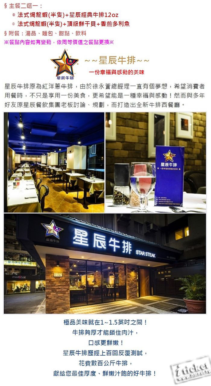 1.本券可單人於星辰牛排餐廳享用-旗艦單人套餐