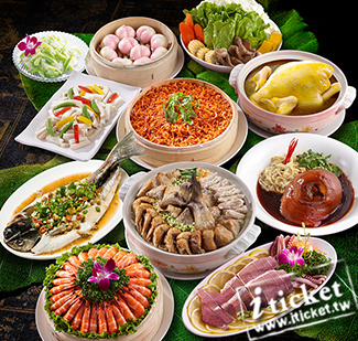 和風中卷生菜、圓籠蒸鮮蝦、紅燒圓蹄、清蒸鮮魚、鮮魚芋香鍋、櫻花蝦米糕、山藥鮑菇、砂鍋燉雞+合時青菜、中式美點、甜蜜情人果 。