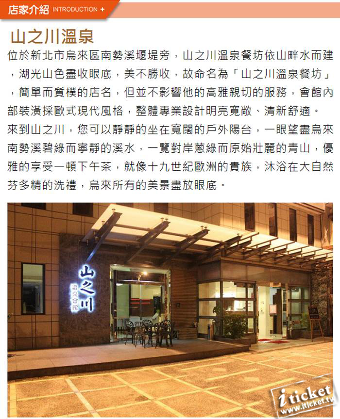 1.本券單人至山之川溫泉會館使用大眾裸湯及設施,含美式咖啡乙杯(現場價值$100)。
