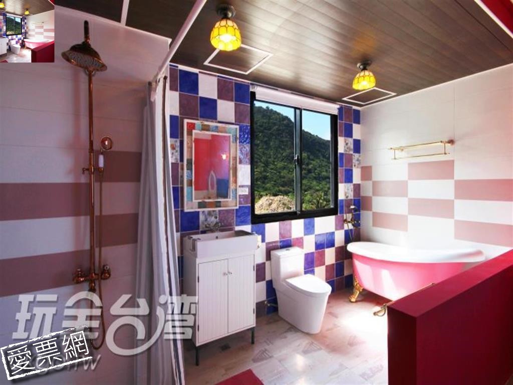「綠島潛水民宿‧月光城堡Moon's Diving House」外觀以各種繽紛的粉色系為主,融合富含創意的建築設計,猶如夢幻的童話王國,帶給大小朋友尖叫不斷的連連驚喜。我們是一對喜歡到處旅遊,體驗世界各地不同風情的甜蜜小夫妻,將其四處遊歷的經歷和想法融會貫通,運用在小城堡上,融合曾去過的城市縮影和異國家飾品、紀念品,展現成熟多變的夢幻風格。運用甜美且魔幻的名稱為房間命名,搭配天馬行空的創意設計和復古磚等充滿特色的裝潢佈置和造景擺設,打造出帶點小歐風和工業風的典雅房型,民宿主打魔幻波多套房,除了擁有較為寬闊的空間格局,更有可見優美海景的景觀窗戶,旅人們可以邊泡澡邊看海,享受毫無憂慮的悠閒假期,希望你們會喜歡。