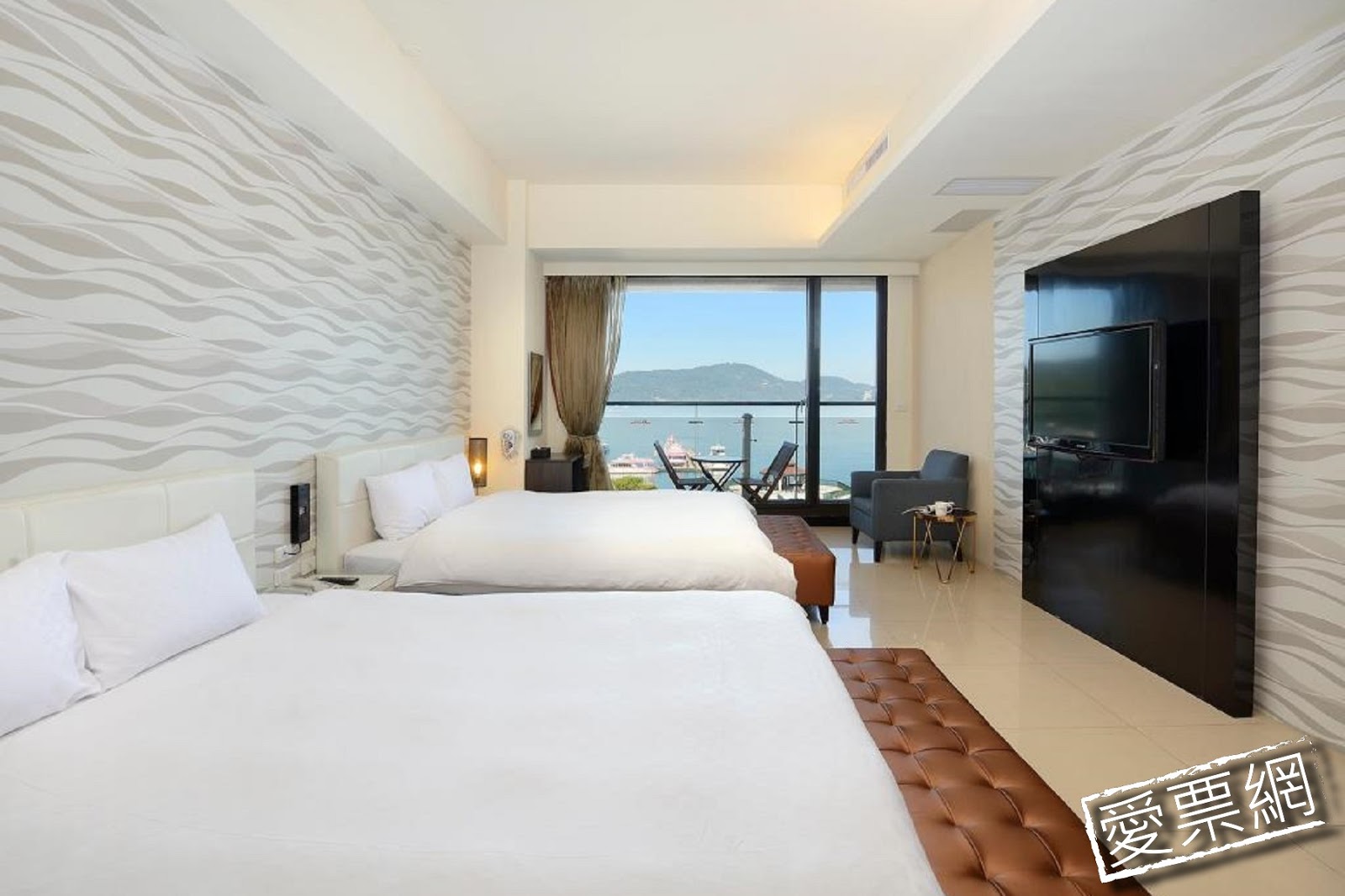 房間備有乾溼分離採光浴室、泡澡休閒浴缸、觀景陽台、變頻冷暖空調、42吋液晶電視、大尺寸獨立筒床墊、高級羽絨被。