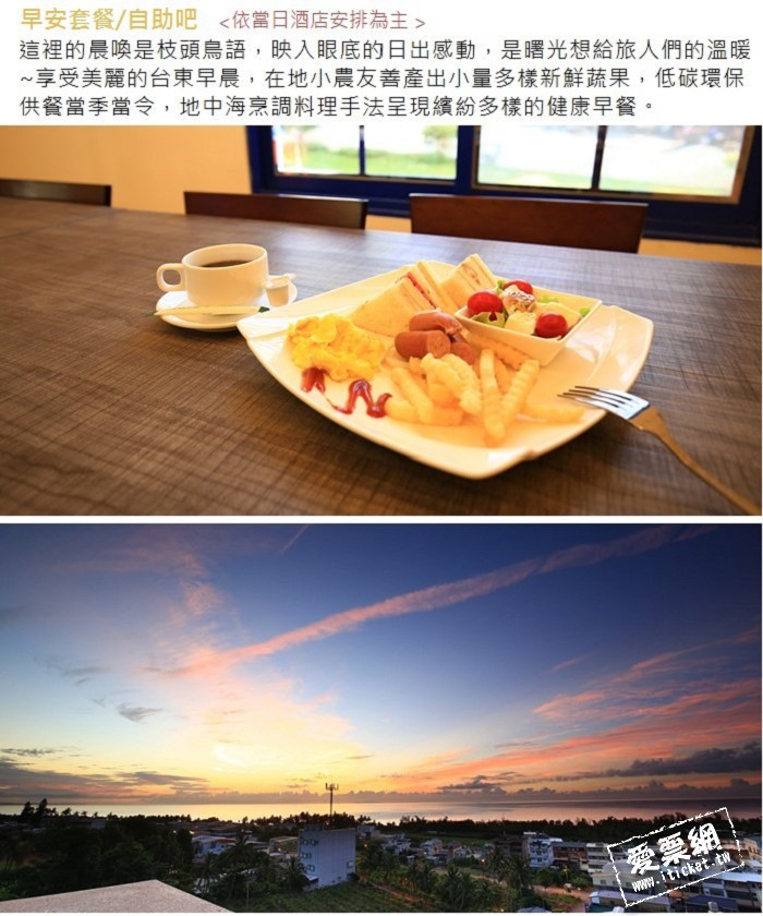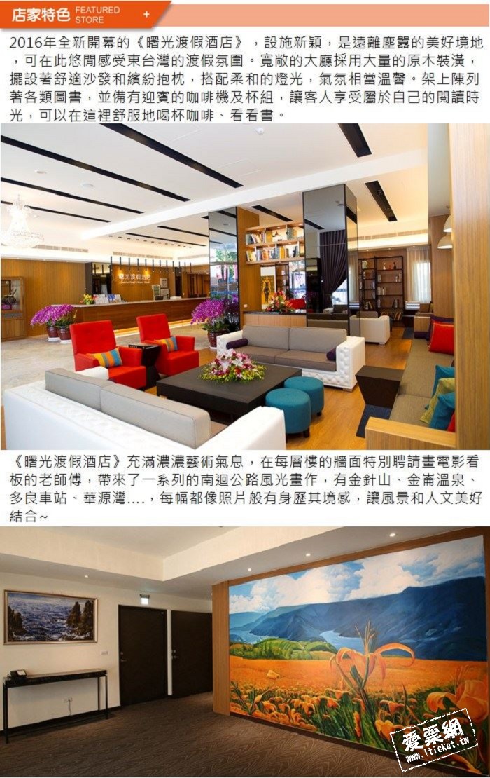 1.本券可4人於曙光渡假酒店入住星空四人房乙晚,含4客早餐+2張大王賽車單次券以及太麻里車站免費接駁1次。