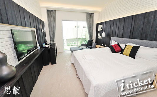 ◎坪數:11.5坪/36.4平方公尺◎床型:一大床◎附自然醒雙人陽光晨餐◎房間設備:淋浴室乾濕分離、爵柔頂級king size雙人眠床、法國品牌Pascval Morabito沐浴組、大金變頻冷氣、Minibar無壓縮機省電小冰箱、提供Wi-Fi、42" 液晶電視、Villery&Boch衞浴設備、礦泉水、咖啡、茶包、浴巾、毛巾、牙刷、牙膏等私人備品、白水木精緻夾腳拖鞋