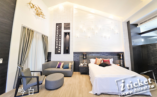 ◎人數:2人◎坪數:10坪/33.1平方公尺◎床型:一大床◎附自然醒雙人陽光晨餐◎房間設備:淋浴室乾濕分離、爵柔頂級king size雙人眠床、法國品牌Pascval Morabito沐浴組、大金變頻冷氣、Minibar無壓縮機省電小冰箱、提供Wi-Fi、42" 液晶電視、Villery&Boch衞浴設備、礦泉水、咖啡、茶包、浴巾、毛巾、牙刷、牙膏等私人備品、白水木精緻夾腳拖鞋