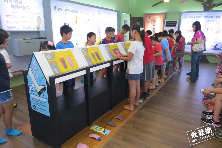 台灣足鞋健康知識館是非常適合親子參訪的地方,規劃了人骨積木遊戲,透過堆疊讓孩子了解雙腳就像房子的地基一樣重要;XBOX親子互動遊戲,透過遊戲訓練身體的協調性;跳跳環及古早童玩踩高蹺都是很好檢視平衡感與手腳協調能力的遊戲;親子歡樂森林遊戲區,設有精靈飛高高訓練腳部力量,足印記憶考驗,可以讓孩子認識各式動物的腳印。