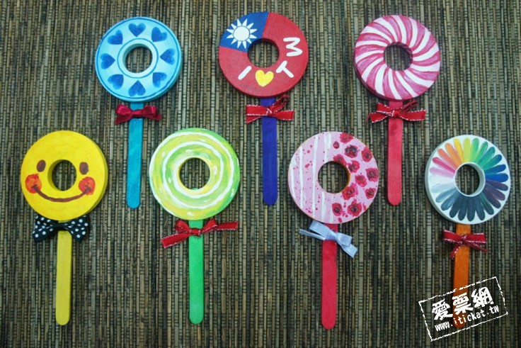 宏洲創意手作產品「童心圓磁鐵」,將年幼時期最喜愛的棒棒糖為構想,我們總拿在手上把玩與那甜滋滋的美好幸福,這一刻將它畫作永恆,並於背面黏上磁鐵與冰棒棍,將童心化作同心,一起記憶我們的美好年代。
