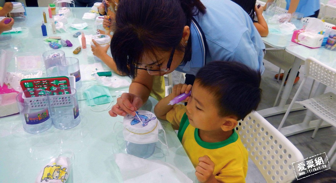 內含彩繪口罩DIY套組1人份 加贈時尚黑口罩一盒、鬆餅套餐一份、兒童遊戲區遊玩體驗