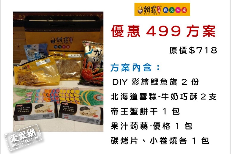 內含 DIY 彩繪鯉魚旗 *2 +北海道雪糕-牛奶巧酥 *2+帝王蟹餅乾 *1+果汁蒟蒻-優格 *1+碳烤片 *1+小卷燒 *1