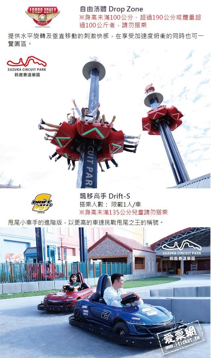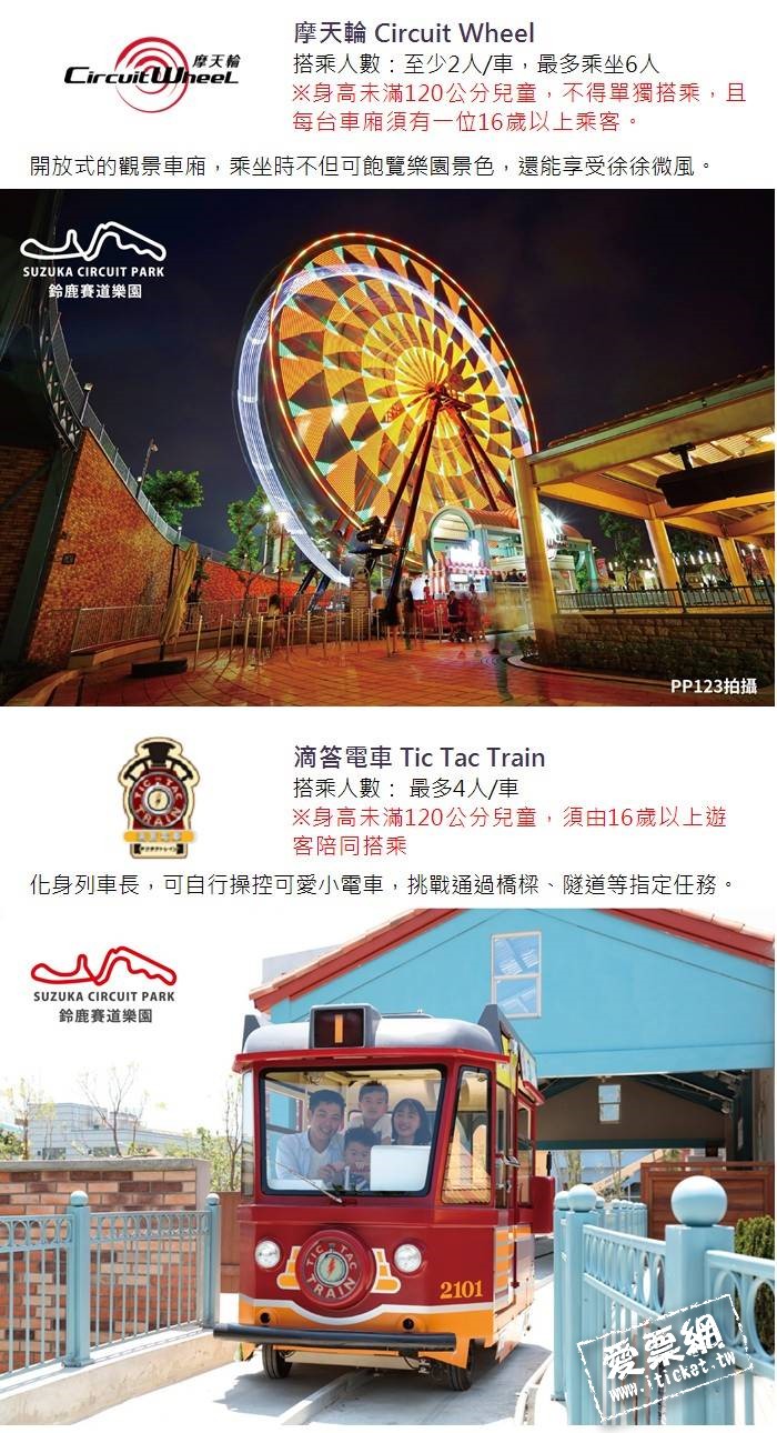 1.單張適用於鈴鹿賽道樂園,每券限1人使用。