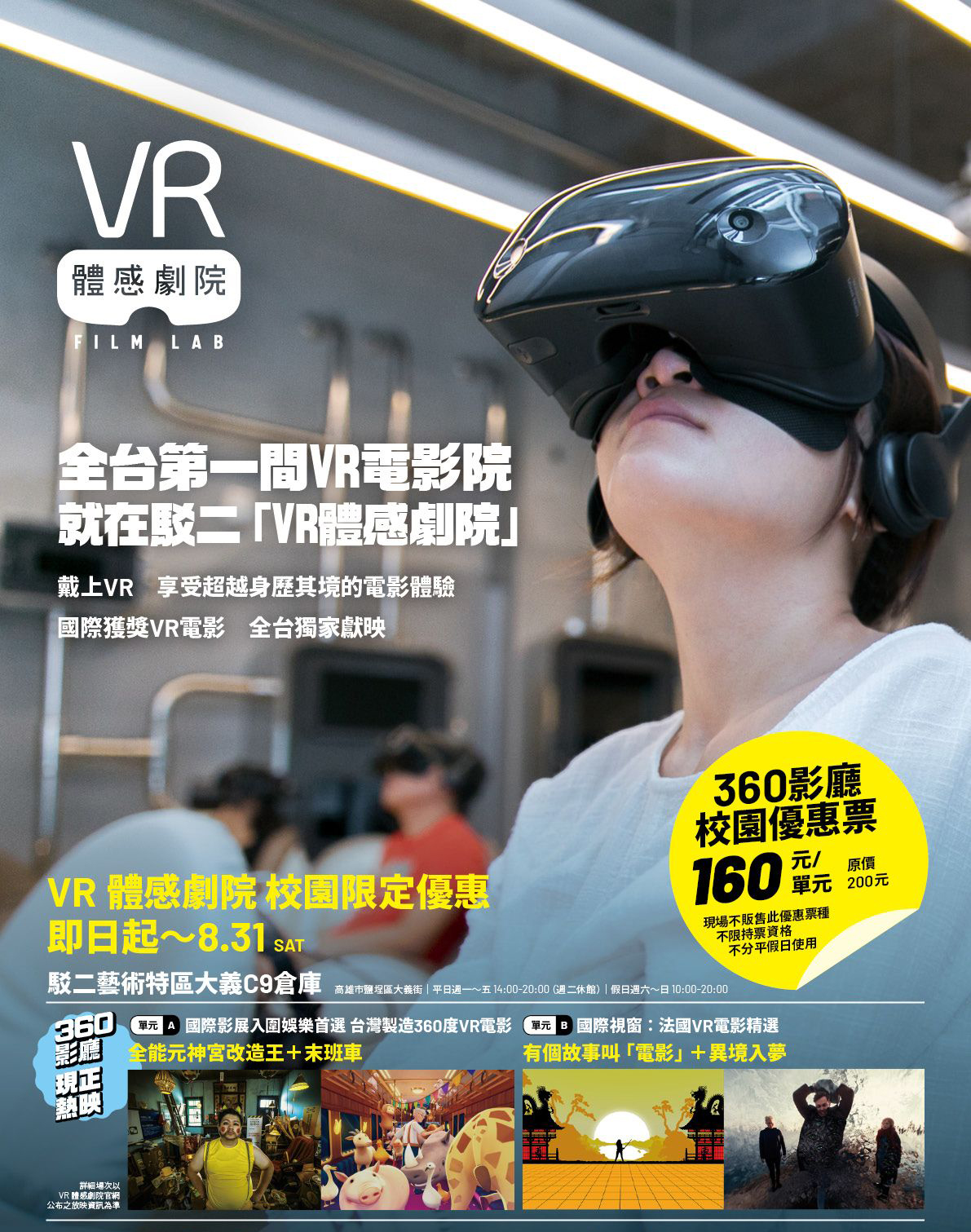 放映地點:駁二VR體感劇院 - 360影廳(高雄市鹽埕區大義街駁二大義區C9倉庫)