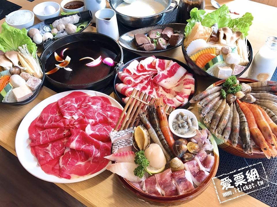 2. 套餐內容:獨門湯底6選2(和風/壽喜燒/孜然/玫瑰牛奶/豆乳味噌/蔬菜)+頂級海鮮盤3選1 (都想吃海鮮盤/手不酸海鮮盤/勤勞力海鮮盤)+生鮮菜盤2份+精選單點180元以下任選2份+附餐2選1(白飯/冬粉)+生鮮麵、霜淇淋、飲品無限供應吃到飽。
